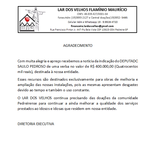Para ajudar a instituição, entre em contato pelo telefone (19)3893-2127 e marque uma vista com o responsável. Todas as instituições gostam de ser visitadas, desde que se tenha o cuidado de marcar antes a visita.